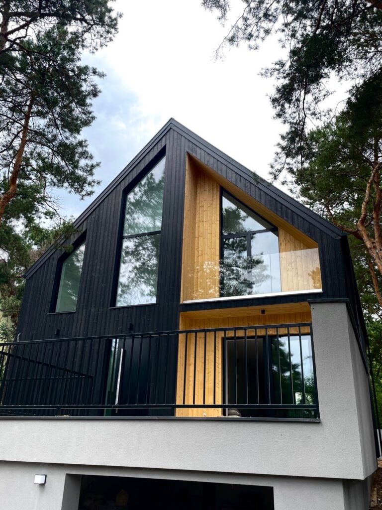 Das KARPATIA-2 Holzprofil wird bei der Imprägnierung verkohlt und danach gebürstet und schwarz gebeizt. So entsteht eine gebürstete Holzstruktur mit sichtbarer Maserung und Astlöchern. Die KA RPATIA-Serie sind in verschiedene Varianten von skandinavischem Fichtenholz in Schwarz. Sie sind f ür die interner und externer Gebrauch bestimmt. Außerdem sind neben der oben beschriebenen Variante KARPATIA- 2 auch die Varianten KARPATIA-1 und KARPATIA- 3 erhältlich.