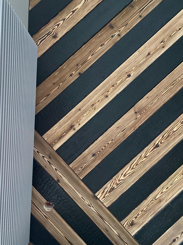 Verkohlte Wandholzprofile sind eine ideale Lösung und Idee für einen originellen Innenausbau, unter anderem im rustikalen oder skandinavischen Stil.